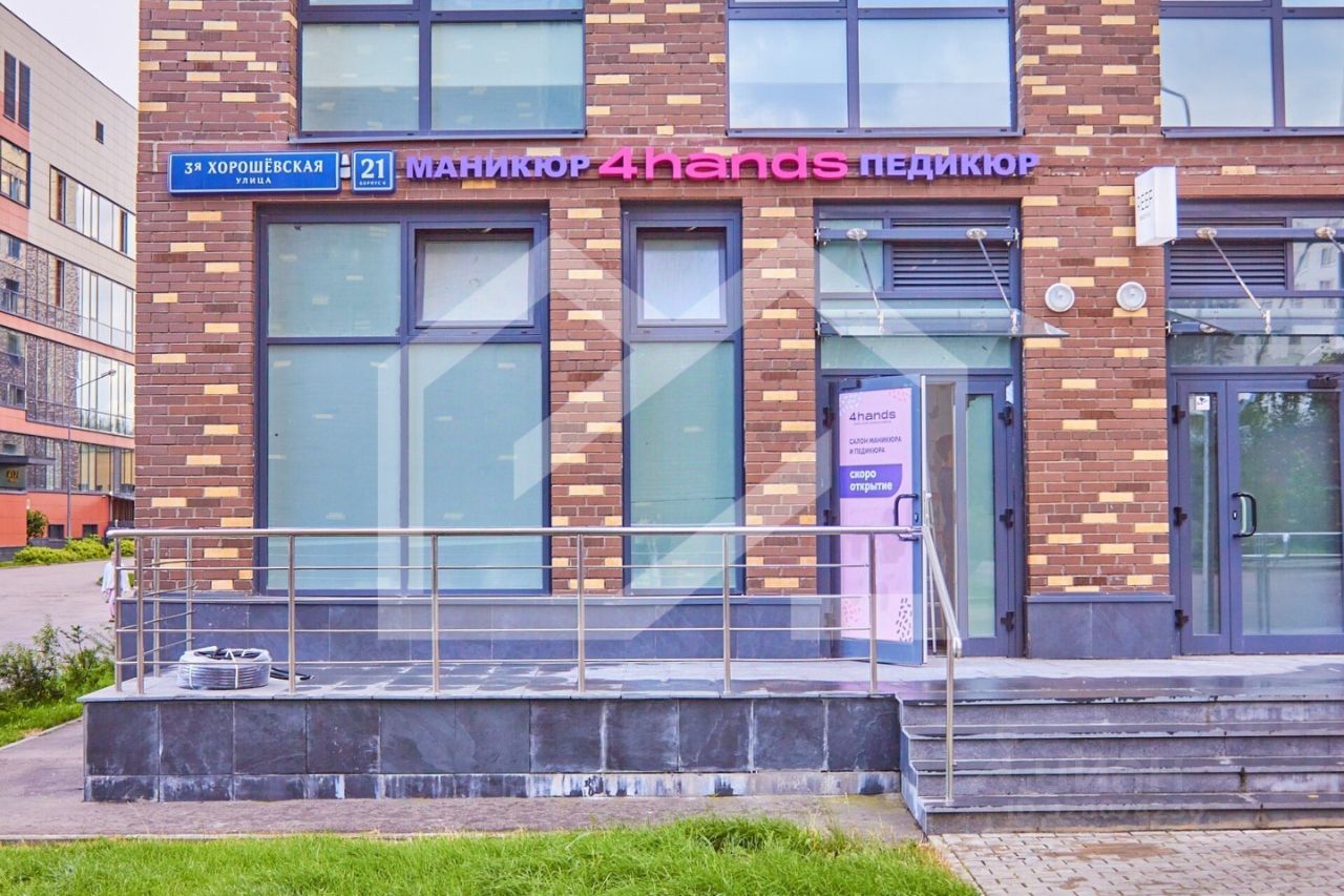 1128841. Предлагаем угловое помещение свободного назначения с арендатором 4Hands, площадью 45.9 кв. м, расположенное на первом этаже 20-этажного жилого дома в ЖК "Хорошёвский". Находится на въезде/входе в ЖК. Без комиссии для покупателя.