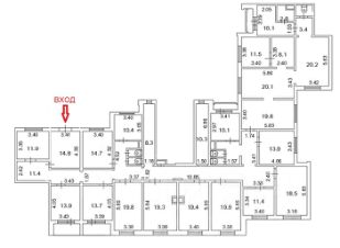 Планировка: 18 офисных помещений разной площади, 3 с/узла.