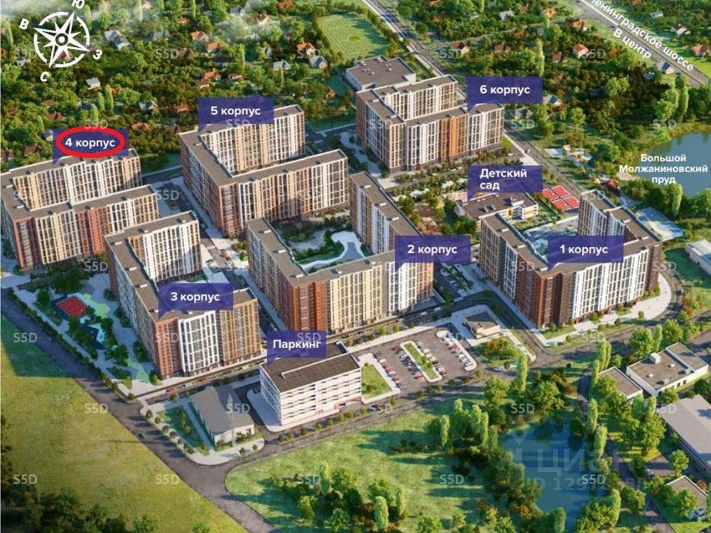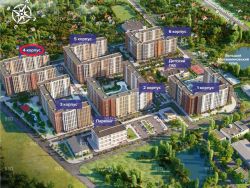 Комплекс состоит из 6 домов переменной этажности (от 12 до 15 этажей - все корпуса сданы и заселены!!), наземного паркинга, детского сада и школы.