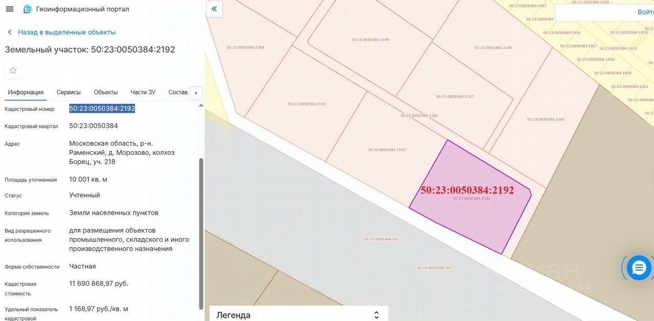 Участок промназначения — Раменский район. Завод, склад, фабрика, под магазин, стоянка и др. 50:23:0050384:2192. Можно в рассрочку.