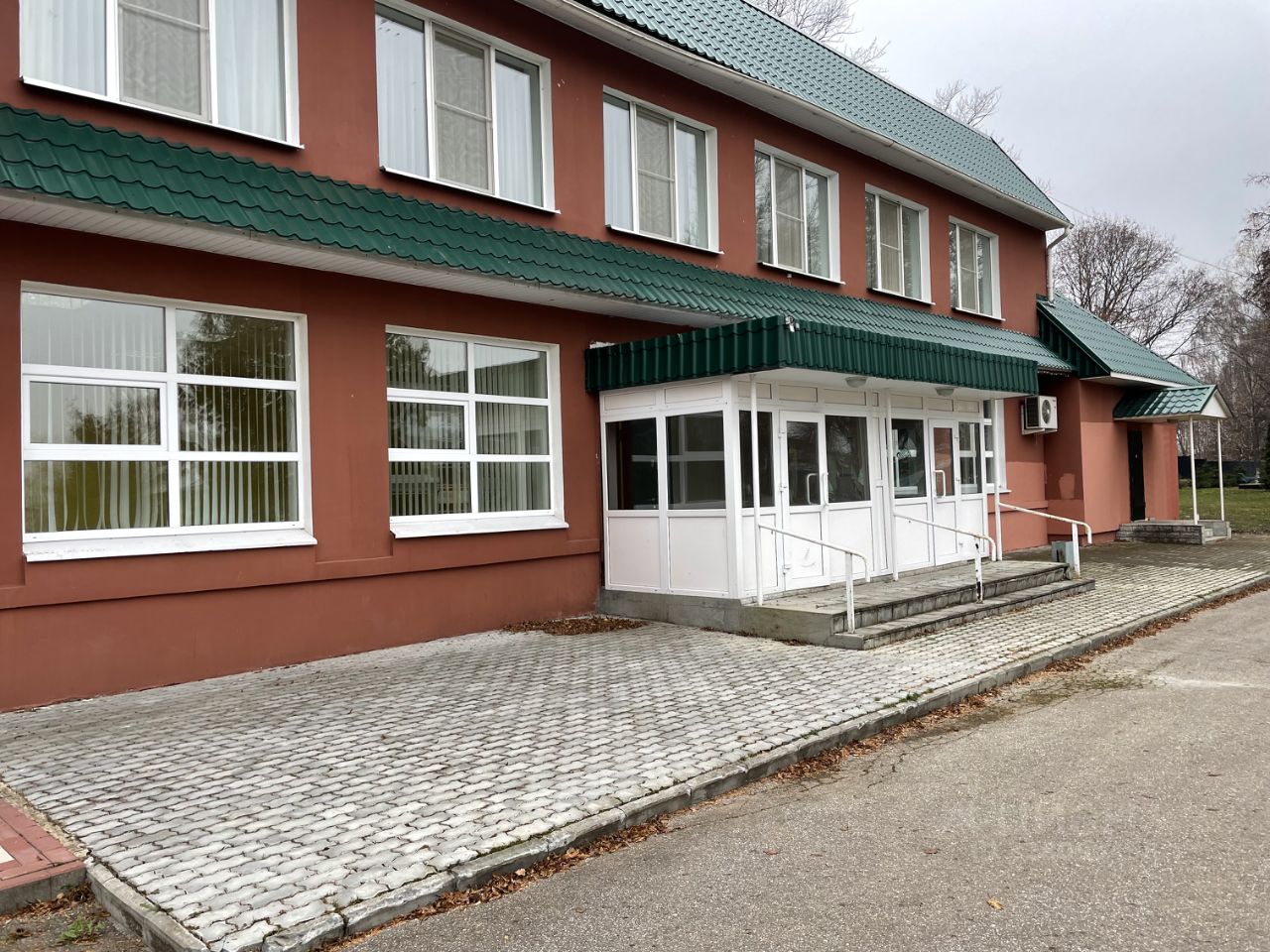 Продается отдельностоящее двухэтажное здание. Стены кирпичные, перекрытия железобетонные. Электричество, вода, отопление, канализация. Подъезд к зданию с двух сторон. Отделано внутри и снаружи. Покрытие пола - плитка.