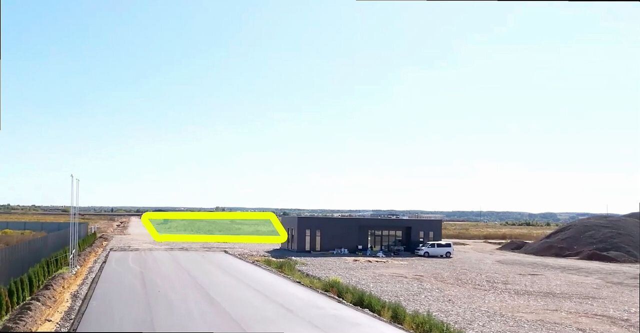 Участок 20 соток позволяет разместить производственно-складское здание около 1 200 м² с зоной разгрузки и парковки.
