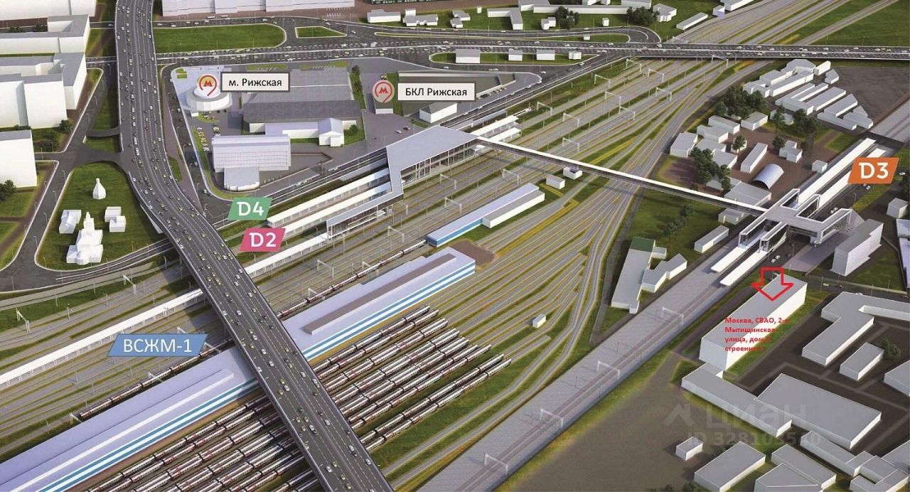 Продается офисный блок 1235 кв.м. на 6 и 7 этаже, по адресу: Москва, СВАО, 2-я Мытищинская улица, дом 2 стр. 1. Помещение можно использовать под научно-производственную деятельность или офисы. В районе Рижского вокзала построят крупнейший в столице транспортно-пересадочный узел, который объединит две линии метро и три центральных диаметра. Через ТПУ Рижская пройдет и высокоскоростная магистраль Москва Санкт-Петербург. Протяженность магистрали составит 679 километров. Время в пути между Москвой и Санкт-Петербургом сократится почти в два раза: вместо четырех часов пяти минут пассажиры доедут за два часа 15 минут. Рижская. Оттуда можно пересесть на МЦД-2, МЦД-3, МЦД-4, на Большую кольцевую и Калужско-Рижскую линии метро, а также наземный городской пассажирский транспорт. Там хотят реконструировать четыре платформы МЦД-2 и МЦД-3, построить объединенный надземный пассажирский вестибюль для пересадки между МЦД-2, МЦД-3, МЦД-4. Кроме того, планируют сделать транзитный переход через железнодорожные пути между Водопроводным переулком и 2-й Мытищинской улицей. Открытие станции Рижская МЦД-3 запланировано на 2029 год. Это произойдёт после завершения строительства крупного транспортного узла с вокзалом высокоскоростной магистрали Москва — Петербург. Кадастровый номер земельного участка на котором располагается здание: 77:02:23017:018-объект расположен вне границ комплексного развития.