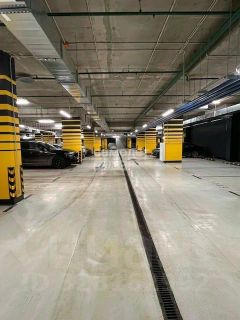 Рядом лифт при въезде на парковку автоматическая мойка колес.