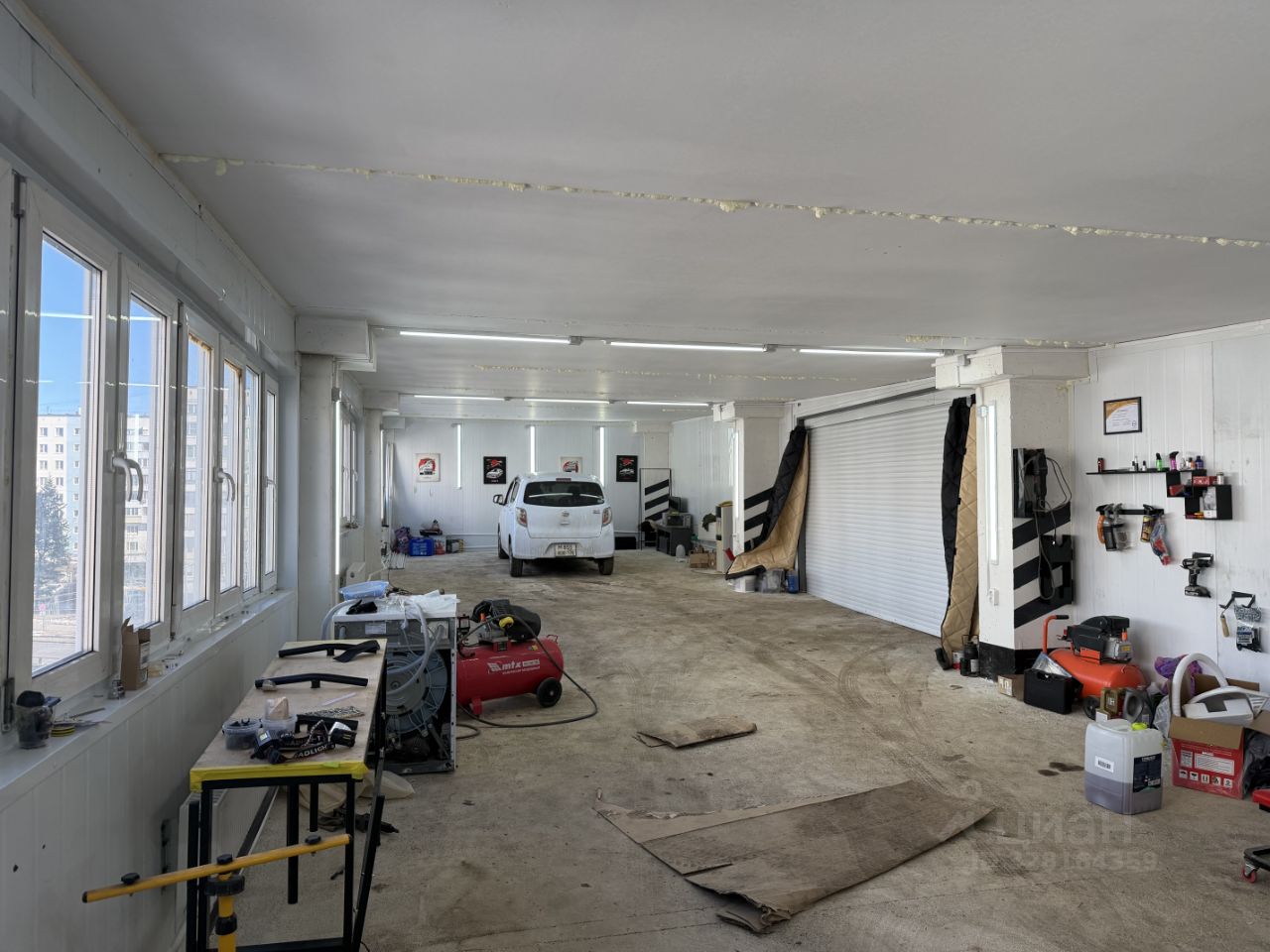 Помещение находится в шаговой доступности от жилого комплекса, что обеспечивает постоянный поток клиентов. Есть окна, двое автоматических въездных ворот, удобный въезд и парковка. Общая мощность электричества — 20 кВт, доступны 220 и 380 вольт, имеется автономное отопление — идеально подходит для различных сервисных бизнесов.