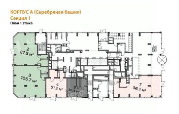 Лот 1063053 Продажа коммерческого помещения в новостройке: 105,70 кв. м., 1 этаж в комплексе АУРА, 1 очередь, корп. А (Серебряная башня), сдача: 4кв. , этажей: 40, адрес Большая Тульская ул., д. вд. 10, Застройщик: Мангазея.