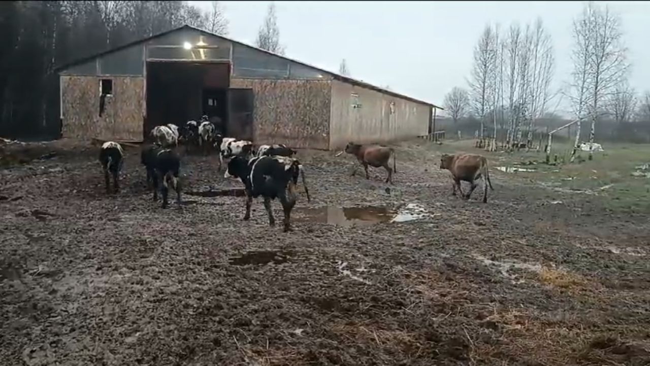 На участке есть ангар, в котором раньше держали домашних животных, общей площадью около 500 метров, на сваях.