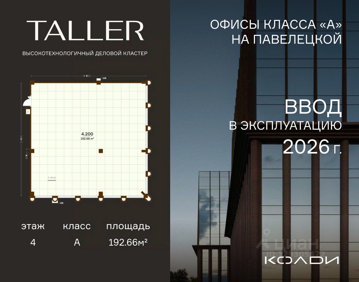 Бизнес-пространство TALLER расположено в центре Павелецкого делового района. Оно станет первым за 14 лет офисным проектом А класса в данной локации, что делает его уникальным как в целях покупки для собственного использования, так и для инвестиций. Исключительность проекта подчеркивает и гармоничное сочетание современного экстерьера с богатым архитектурным наследием прошлого: один из фасадов делового центра украшает знаковый элемент района - воссозданная по исходным чертежам водонапорная башня, некогда венчавшая ведущее промышленное предприятие XX столетия. Хорошая транспортная доступность TALLER обеспечена близостью к Садовому кольцу (1,2 км), метро "Павелецкая" и Павелецкому ж/д вокзалу, откуда регулярно курсируют экспрессы до международного аэропорта Домодедово. Характеристики помещений и делового центра Taller: