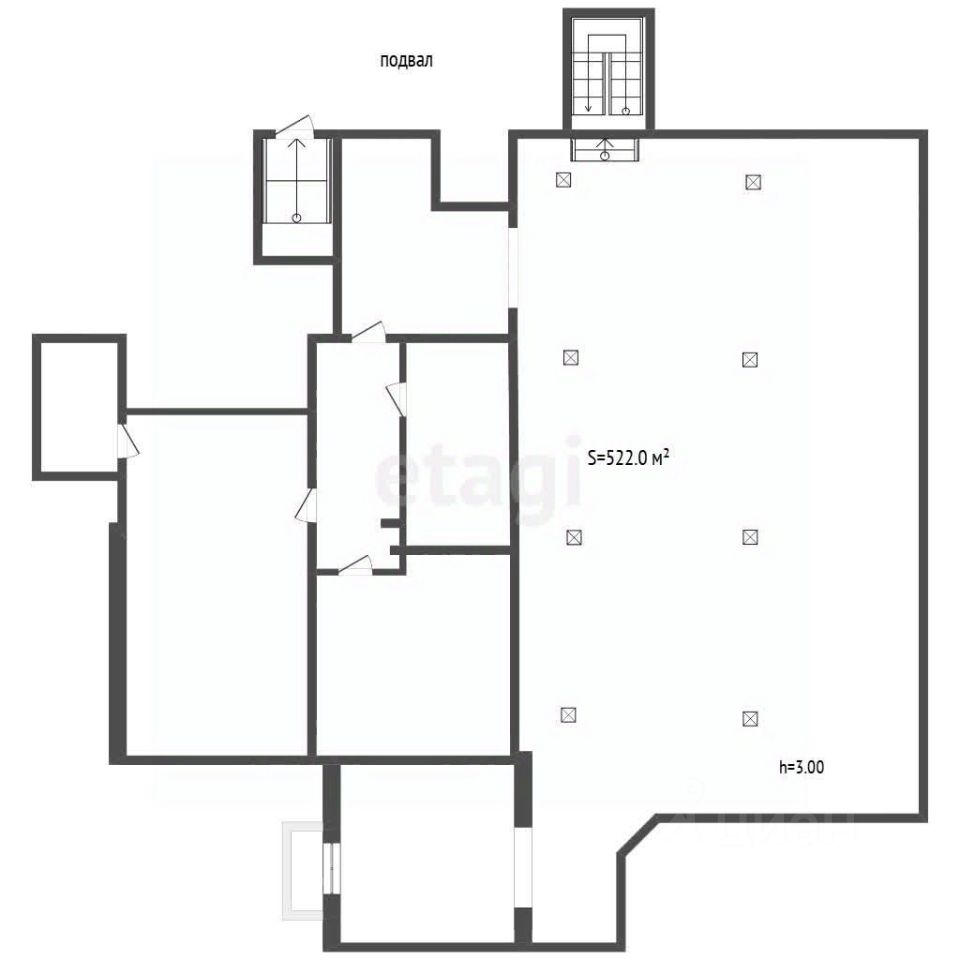 Помещение площадью 522 кв. м на цокольном этаже отдельно стоящего здания.