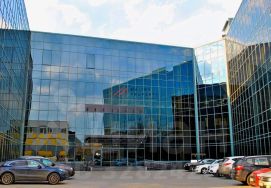 В здании панорамное остекление, на 1-м этаже центральная рецепция.