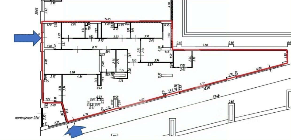 1047931. Предлагаем угловое помещение свободного назначения с арендатором "Самокат", площадью 203.7 кв. м, расположенное на первом этаже 26-этажного жилого дома в ЖК "Тринити". Без комиссии для покупателя.