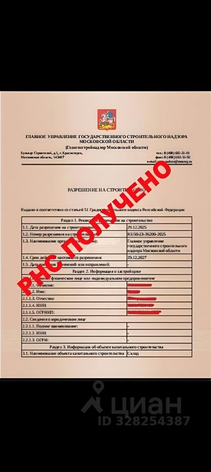 Участок в Промпарке с РНС( разрешение на строительство от стройнадзора) с проектом складского здания формата Лайт Индастриал. ( 1200м)