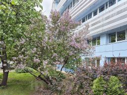 Рядом зеленая парковая зона.