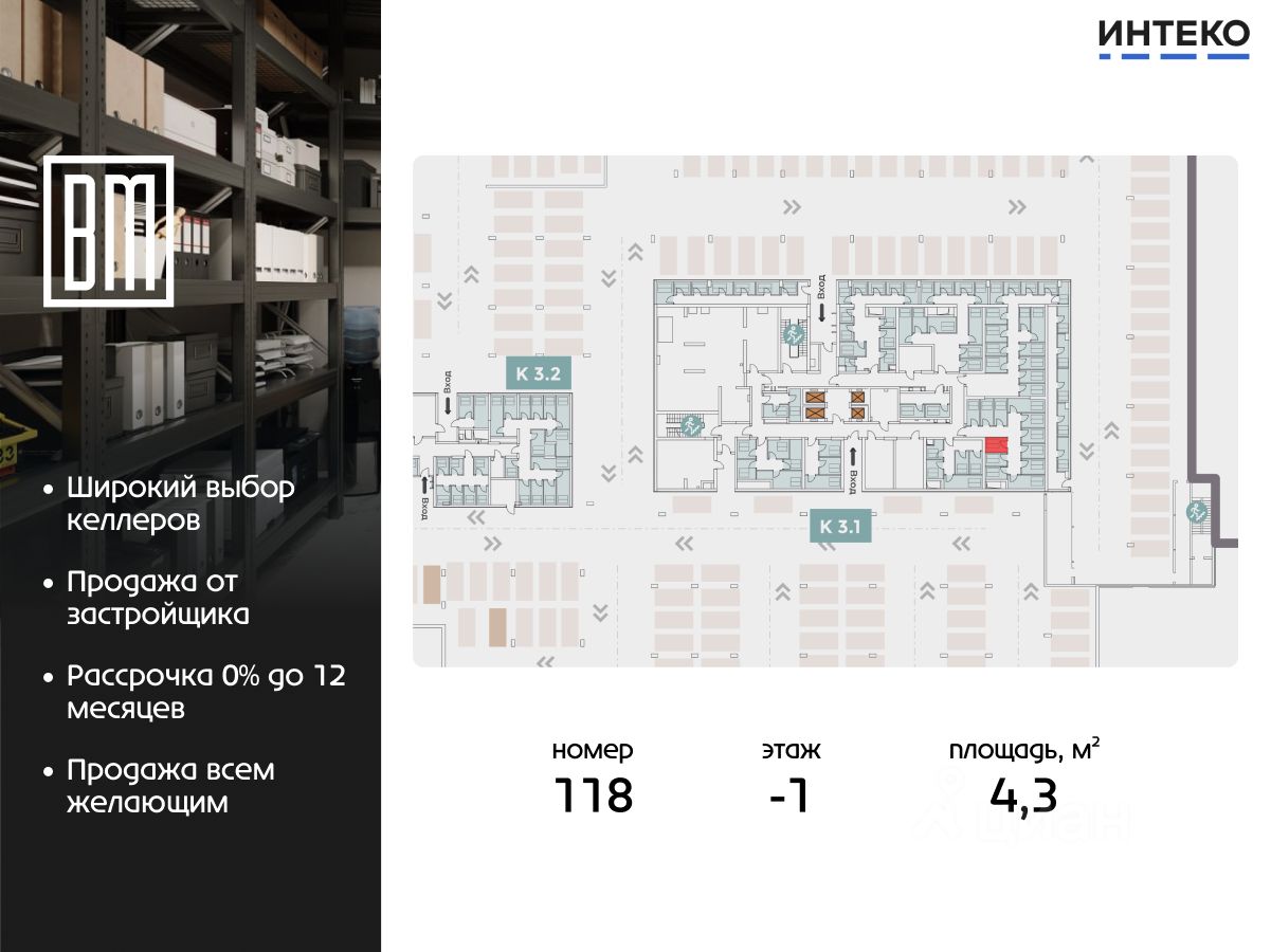 Продается келлер 1.118К в квартале Вестердам от девелопера Sminex.
