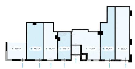Продажа Street Retail помещений торгового или свободного назначения (ПСН) на 1 этаже жилого здания. Большие витрины. Универсальная планировка под любые виды деятельности. Высокие потолки.