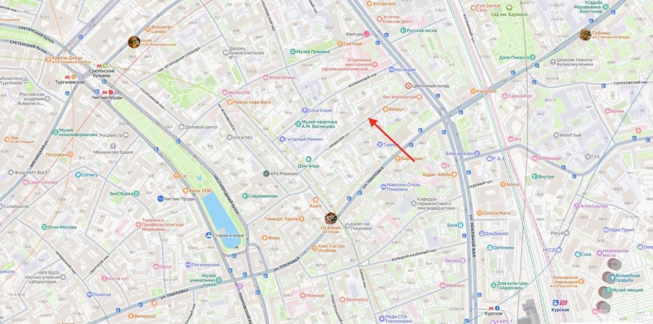 Объект расположен рядом со станциями метро: "Чистые пруды", "Курская" и "Сретенский бульвар". В локации дефицит качественной коммерции. Помещение правильной формы с большим количеством окон, много естественного света.