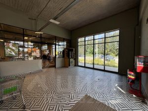 Комплекс расположен в населенном пункте и примыкает к шоссе с оживлённым трафиком. Напротив автобусная остановка и пешеходный переход. Данная локация является центром большой агломерации частных домовладений. Сейчас ведётся активное развитие ближайших территорий.