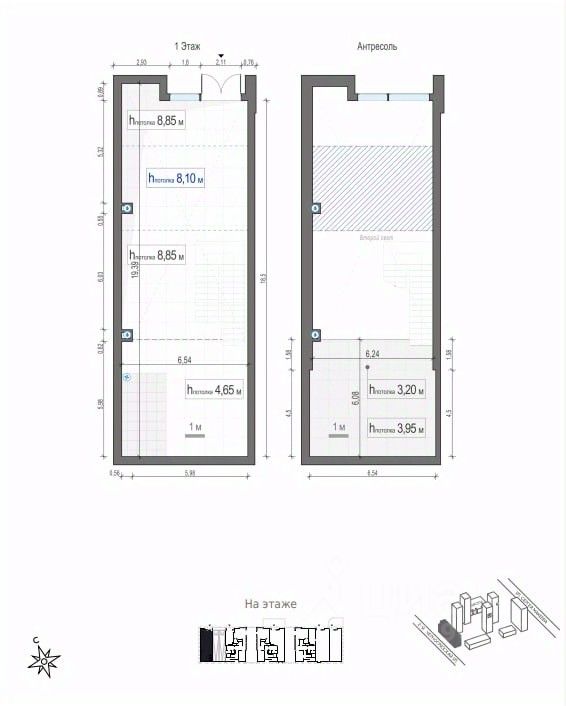 Помещение имеет отдельный вход с улицы и панорамную витрину высотой более 8,5 м.