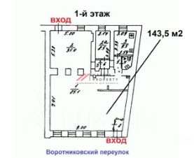 Продажа торгового помещения 143,5 м2 на Воротниковском переулке, д.11 строение 1 (5 минут пешком от метро Маяковская). 1 линия домов.