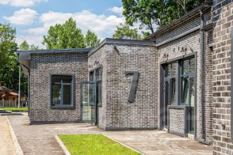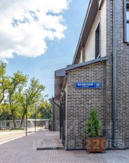 Отделка фасадов выполнена панелями с имитацией клинкерного кирпича. На территории организованы зоны отдыха, имеется возможность для организации летних веранд и кафе.