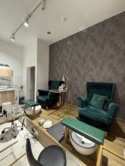 В продаже салон красоты! Общая площадь 80м2, арендная ставка 245 000 рублей. В косметологии мокрая точка, в педикюрной мокрая точка, 2 места стилиста, 2 места мастеров маникюра, 2 места мастеров педикюра(отдельная зона). Услуги: маникюр/педикюр, стилист по волосам (окрашивание, стрижки, укладки), макияж, брови (коррекция, окрашивание, ламинирование), ламинирование ресниц, лазерная эпиляция. Оборудование и расходные материалы, кроме косметики визажиста остаются все. Вытяжки, лампы, кушетка, сухожар и.т.д. По маникюру огромная палитра LUXIO. На продажу Nashi Argan+салонный, проф. уход для волос. Прайс на услуги среднего сегмента. Персонал: 2 администратора, 1 стилист, 2 мастера маникюра/педикюра (один на полный график, второй только по выходным дням), мастер лазерной эпиляции, мастер по бровям, визажист, Продаётся в связи с нехваткой времени на ведение бизнеса. Звонить можно с 9.00 до 24.00 ежедневно. Огромная просьба, если возникают вопросы по объявлению, пожалуйста звоните, а не пишите сообщения!