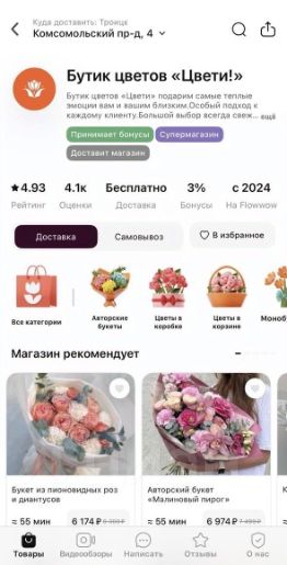 Активные онлайн-продажи: Аккаунт на Flowwow с самым высоким рейтингом в городе и действующий сайт с актуальным каталогом товаров.