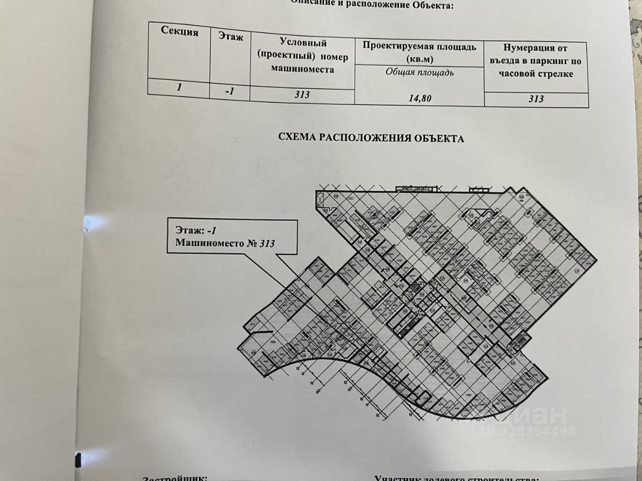 Продается машиноместо в подземном паркинге ЖК "Фестиваль Парк", номер 313, 14,8 м², под 2 подъездом на -1 этаже, рядом с лифтом. Полная стоимость в договоре, я собственник.