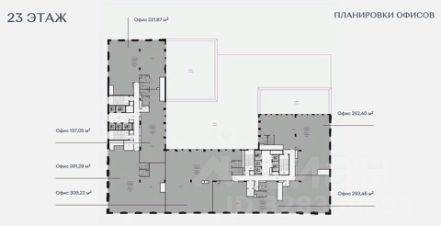 23 этаж - 1475 м2, высота потолков 3.2 м.