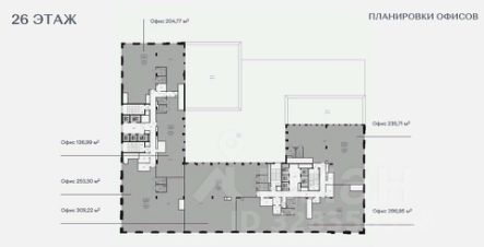 26 этаж - 1427 м2, высота потолков 3.9 м.