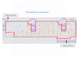 Технические характеристики: Общая площадь - 424,2 кв.м, угловое, 1й этаж, 3 отдельных входа, 19 окон, высота потолков - 3,5 м, электрическая мощность - 60 кВт. Окна по фасаду.