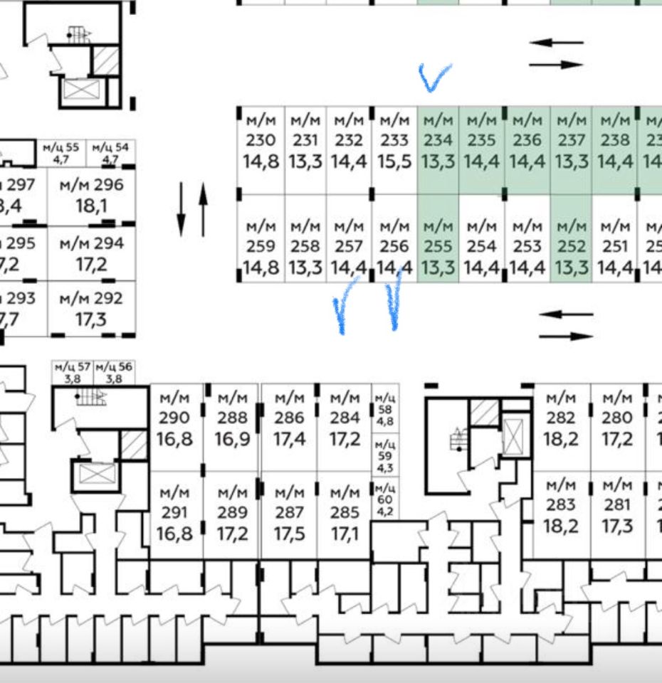 256 и 257 разделены колонной, что дает более удобный вариант парковки