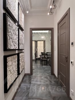 Авторский дизайн в стиле современной классики выполнен из дорогих материалов. Полы из керамогранитных плит коллекций Roberto Cavalli, итальянские двери и люстры, радиаторы Arbonia, подоконники из слэбов черного итальянского мрамора.