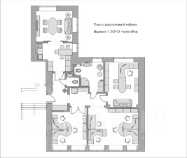 Состоит: из кабинета руководителя, переговорной, двух изолированных помещений для сотрудников, кухни, холла и 2-х санузлов.