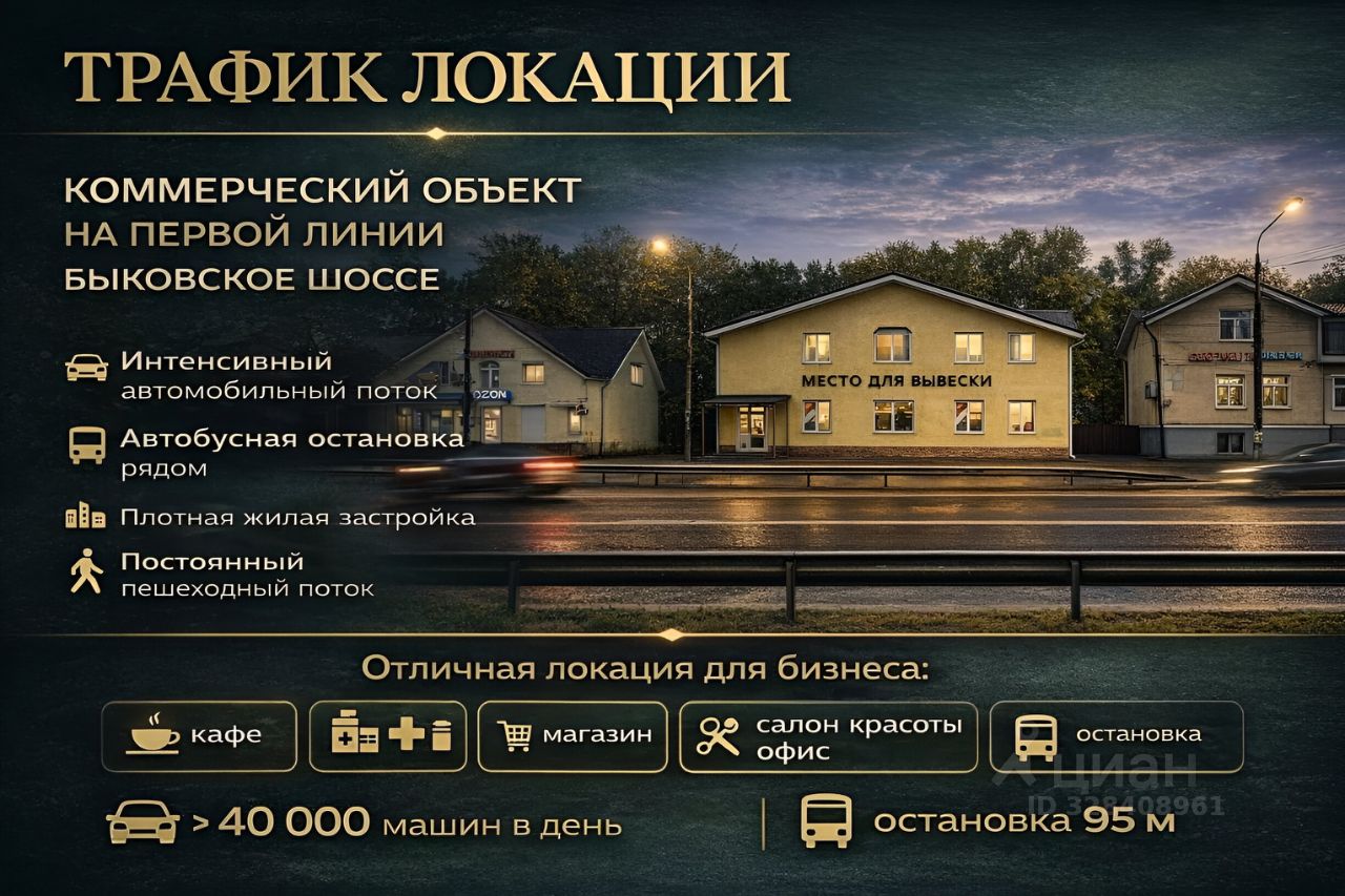 Продаётся отдельно стоящее коммерческое здание 160 м² на первой линии Быковского шоссе в пгт Малаховка, городской округ Люберцы.