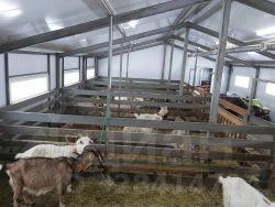- Ферма для коз 120 м2 выполнена из металлоконструкций и сэндвич-панелей на фундаментной ж.б. плите с пластиковыми окнами с приточно-вытяжной вентиляцией, горячей и холодной водой, доильным аппаратом, внутри фермы выгорожены загоны в каждом загоне подведена вода и установлены большие поилки, отдельные помещения для откорма молодняка, для кормов, помещение для козлов с отдельным входом, огороженный выгул у фермы 500м2 с навесом, огороженный большой выпас, стадо коз на 30 голов (в основном зааненская порода коз), молодняк 50 голов