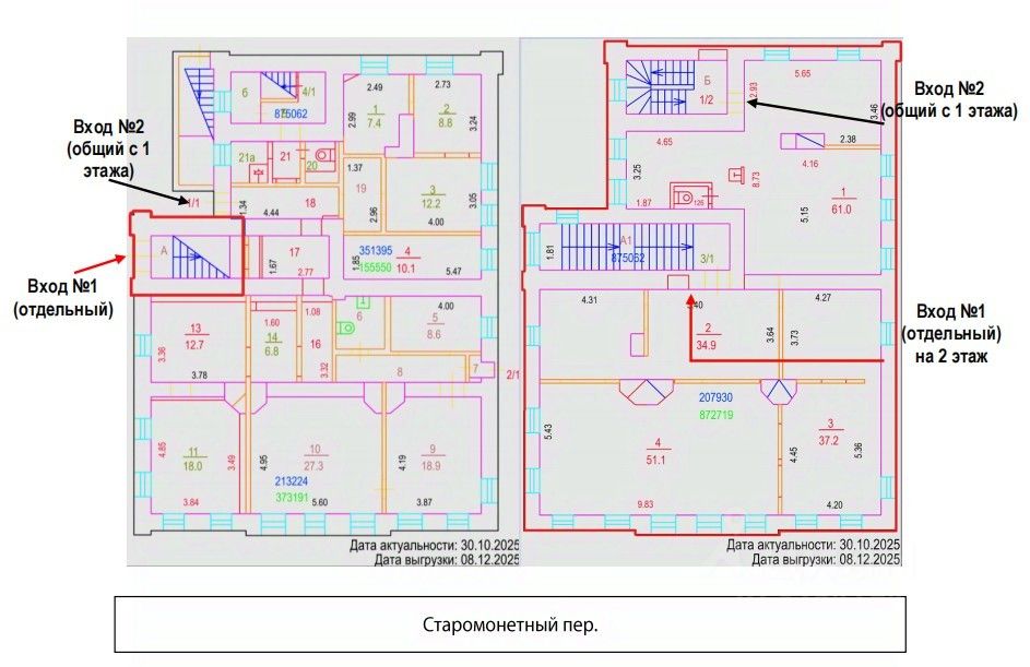 Коммерческое помещение площадью 198 м², расположено по адресу: г. Москва, Старомонетный переулок, 9с1, район Якиманка. Объект культурного наследия - "Главный дом усадьбы, 1819-1822гг., 1899г., архитектор А.А. Бирюков". Объект занимает 1 и 2 этажи в здании с этажностью 2 этажа. Помещение требует капитального ремонта, свободного назначения, имеет вход через иную собственность. Есть охранное обязательство собственника или иного законного владельца объекта культурного наследия.