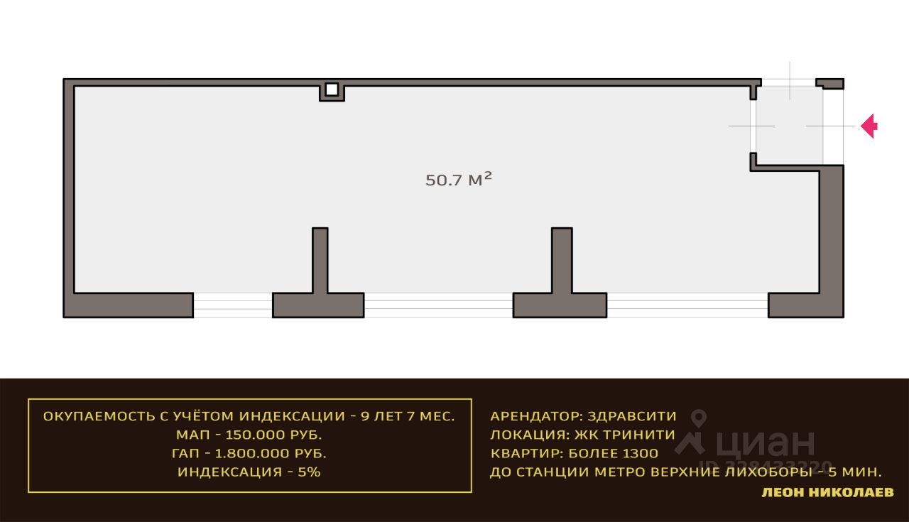 Объект сочетает в себе стабильный доход, понятную экономику и высокий потенциал роста стоимости за счёт развития жилого комплекса и локации.