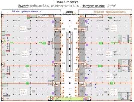 Описание помещения: Два соседних производственных блока на этаже в производственном комплексе легкой и пищевой промышленности. Высокие потолки и усиленные полы до 3.6 т. для размещения линий любой сложности. Современные инженерные коммуникации.