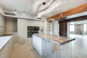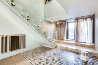 На первом уровне находятся гостиная-столовая, кухня Valcucine (оборудованная всей необходимой техникой, включая винный шкаф), гостевой санузел, гардеробная, а также второй выход на улицу.