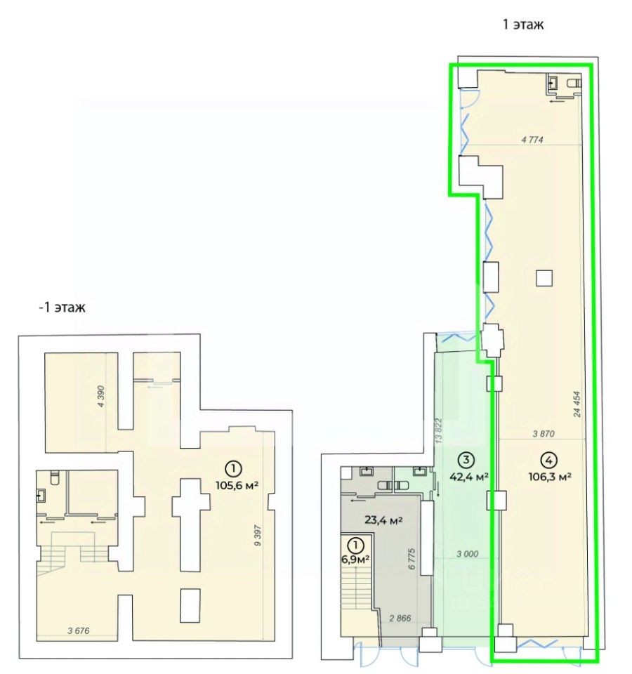 1126485. Предлагаем торговое помещение, площадью 106,3 кв. м., расположенное на 1 этаже 4-этажного административного здания. Блок 4.