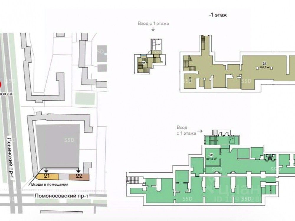 Продажа торгового помещения площадью 297,5 кв.м. на пересечении Ленинского и Ломоносовского проспектов по адресу: г. Москва, Ломоносовский пр-т, 11/70