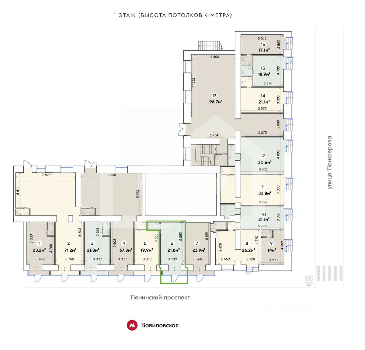1076199. Предлагаем помещение свободного назначения, площадью 21.8 кв. м, расположенное на первом этаже 9-этажного жилого дома. Без комиссии для покупателя.