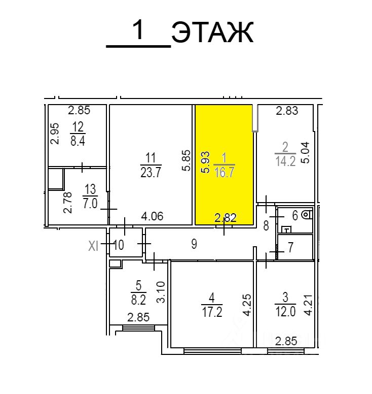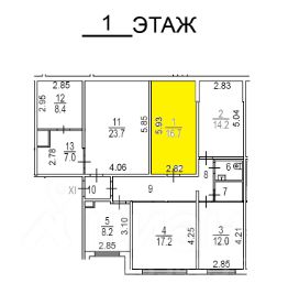 Помещение на 1 этаже жилого дома (на плане БТИ выделено желтым цветом).