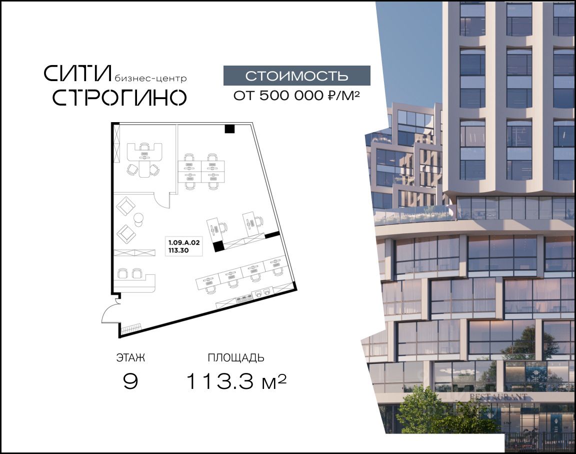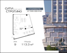 В продаже от застройщика комфортабельный Smart-офис площадью 113.3 м² на 9 этаже в премиальном бизнес-центре Сити Строгино. Срок сдачи — 2028 год.