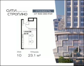В продаже от застройщика комфортабельный Home-офис площадью 23.1 м² на 10 этаже в премиальном бизнес-центре Сити Строгино. Срок сдачи - 2028 год.