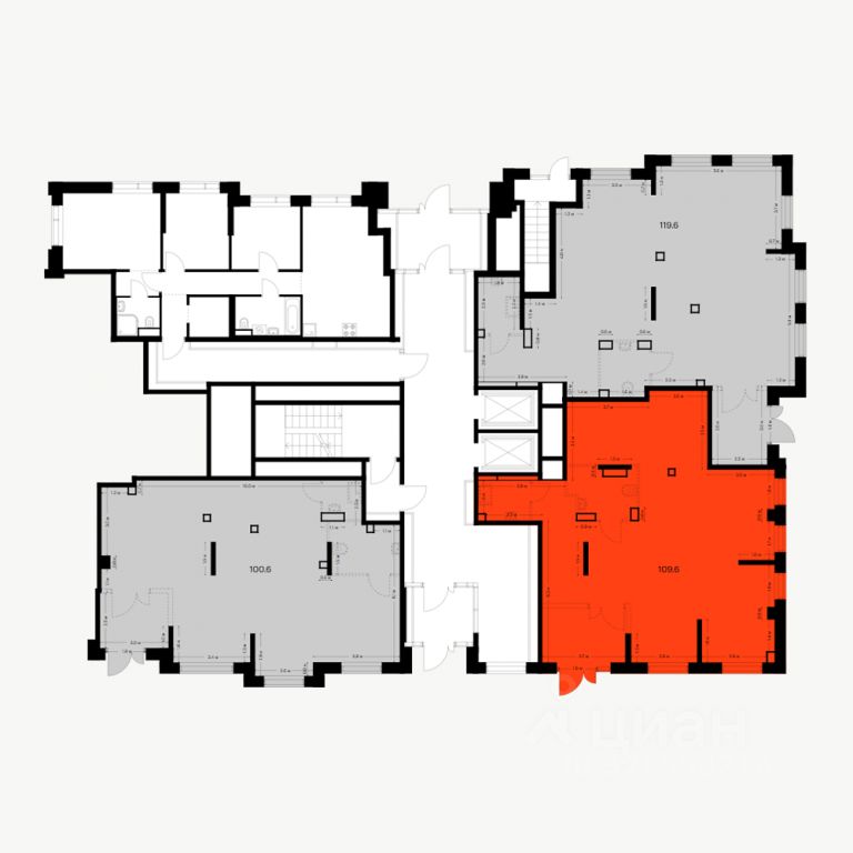 - Открытая планировка, возможно объединить несколько помещений