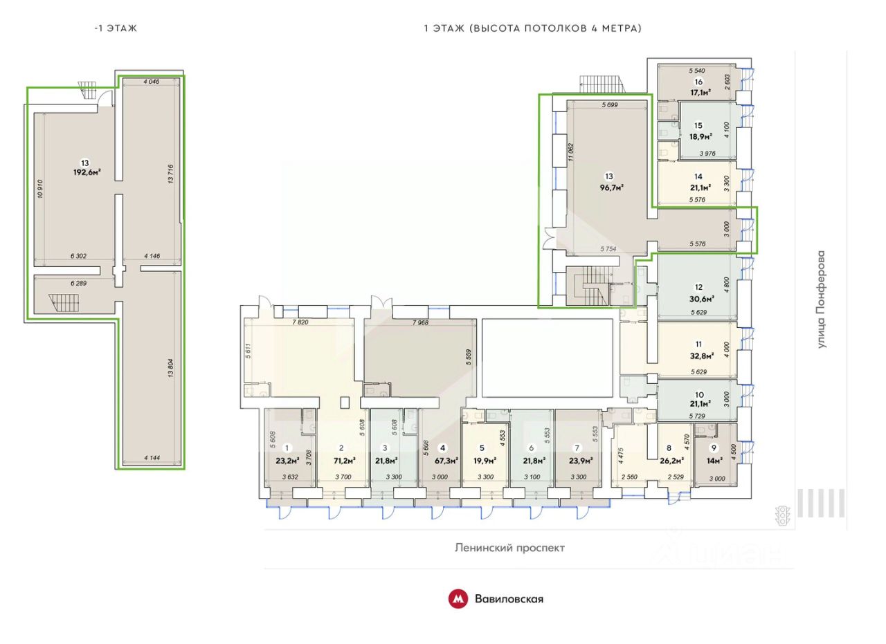 1076238. Предлагаем помещение свободного назначения, площадью 289.3 кв. м, расположенное на первом этаже 9-этажного жилого дома. Без комиссии для покупателя.