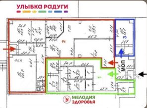 Продается площадь свободного назначения 242,5 кв.м. с двумя отдельными входами и тремя отдельными торговыми зонами на первой линии. Помещение имеет открытую зальную планировку, потолки высотой 3,5 метра и все центральные инженерные коммуникации, включая 106 кВт электричества. Так как помещение находится в составе пристроенного стилобата к многоэтажному жилому дому, оно имеет любое свободное предназначение. Арендатор Улыбка Радуги занимает 150 кв.м. площади, арендатор Мелодия Здоровья занимает 55 кв.м. и ещё 20 кв.м. свободны. Высокая проходимость и интенсивное автомобильное движение.