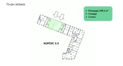 853909. Предлагаем помещение свободного назначения с федеральным арендатором "Магнит" в ЖК "Родные кварталы", корпус 3.3, площадью 249.1 кв. м, расположенное на первом этаже 10-этажного жилого дома. Без комиссии для покупателя.