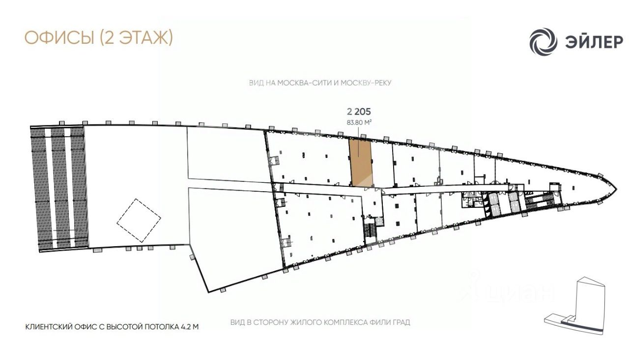 976871. Предлагаем офисное помещение площадью 262,23 кв. м, расположенное в строящемся БЦ "Эйлер"